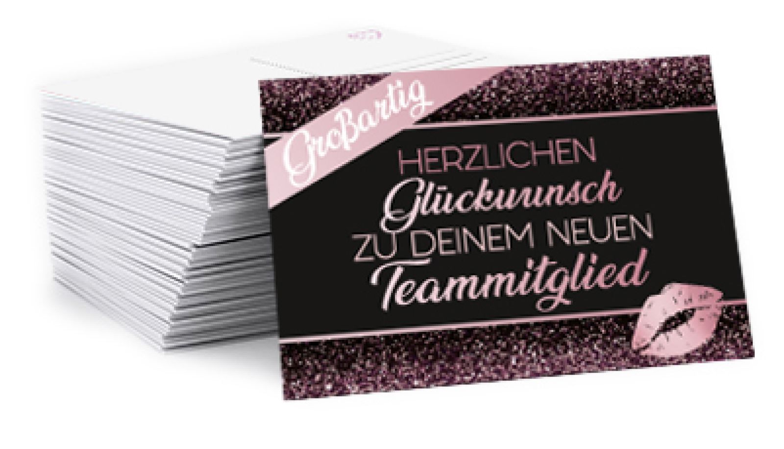 Gratuliere zu neuen Teammitgliedern mit dieser Karte im DIN A6-Format.